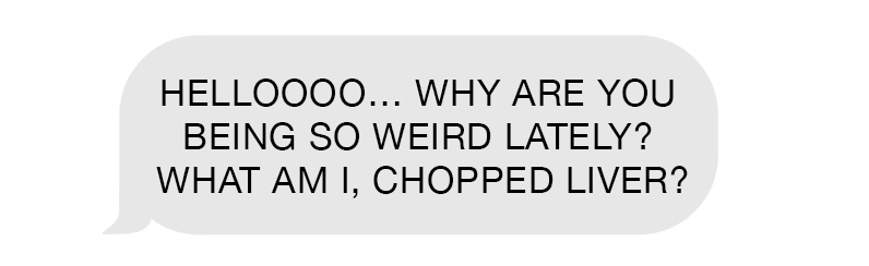 “Helloooo… why are you being so weird lately? What am I, chopped liver?”